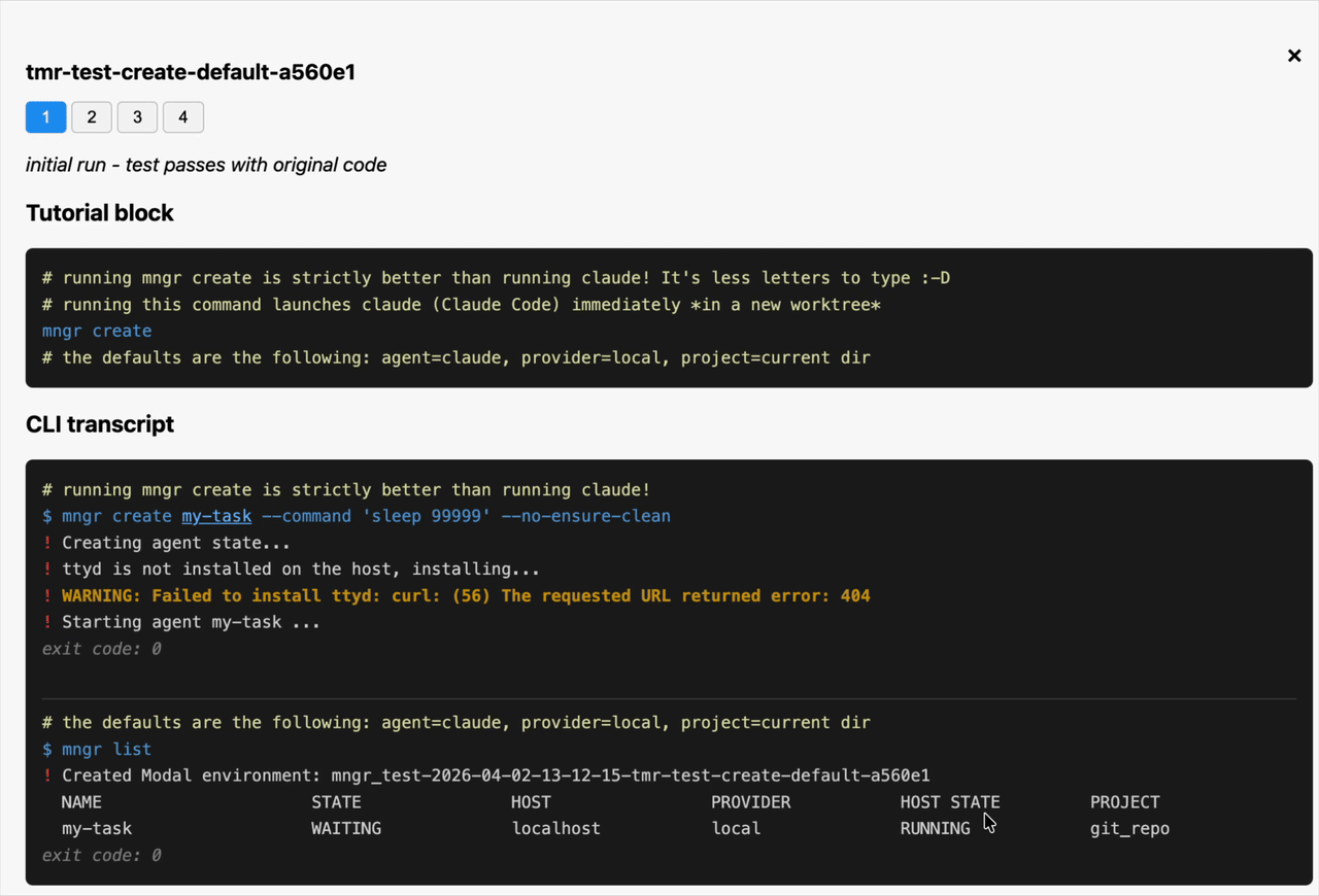 In our previous blog post, we introduced mngr and how you can use it to usefully launch hundreds of parallel agents. Here’s all the details of how we are actually using mngr to run and improve itself, by testing its own demo script.
