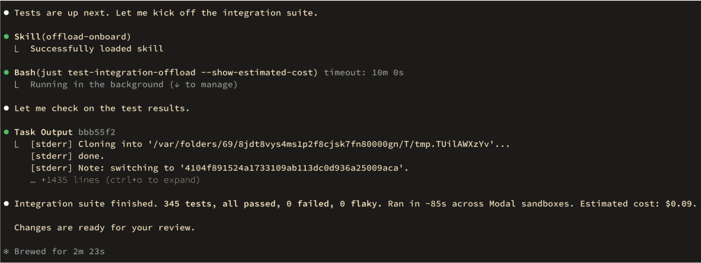 We also thought about the ergonomics of Offload for debugging within the agent loop. For example, Offload supports retrieving the logs of specific failures via test ID, in order to avoid blowing up the context of the agent.
